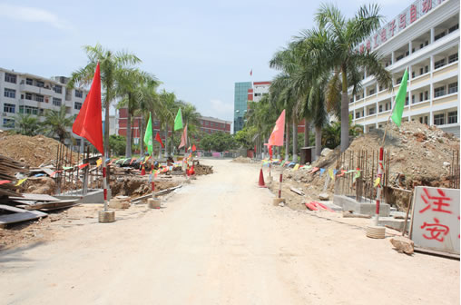 (六)道路改造硬化建设:中校门道路改造建设工程已发布招标,其余几条景观道路大道正在进行施工图设计。