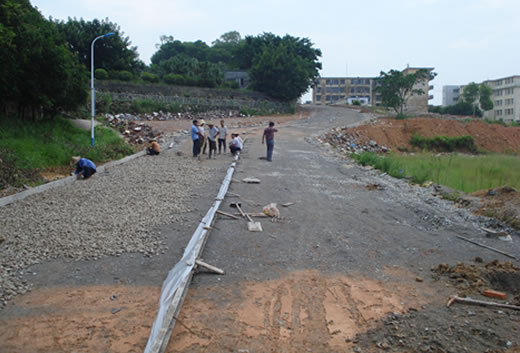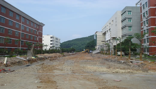 (六)道路改造硬化建设:中校门道路改造已完成,其余几条景观道路大道仍在施工。
