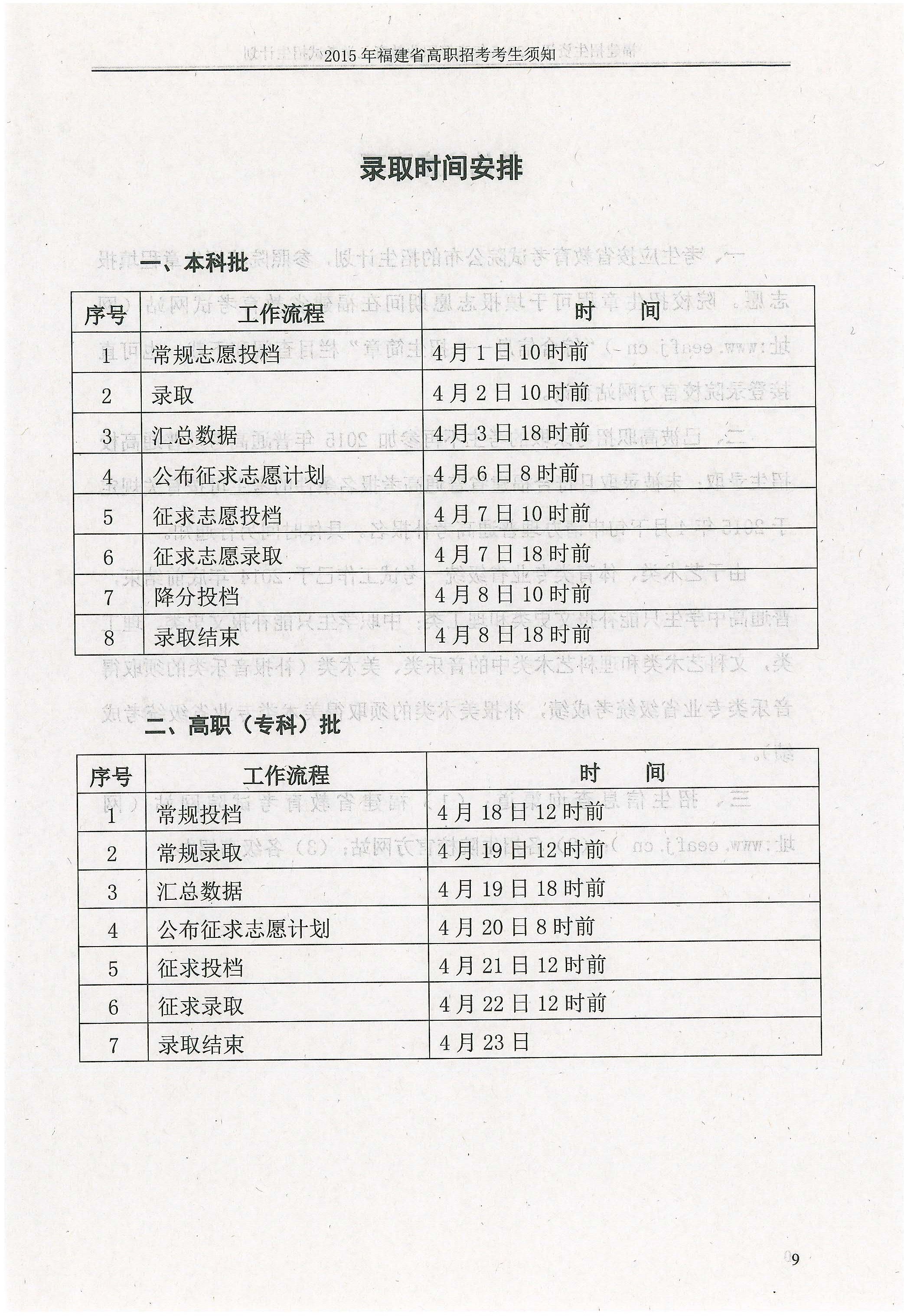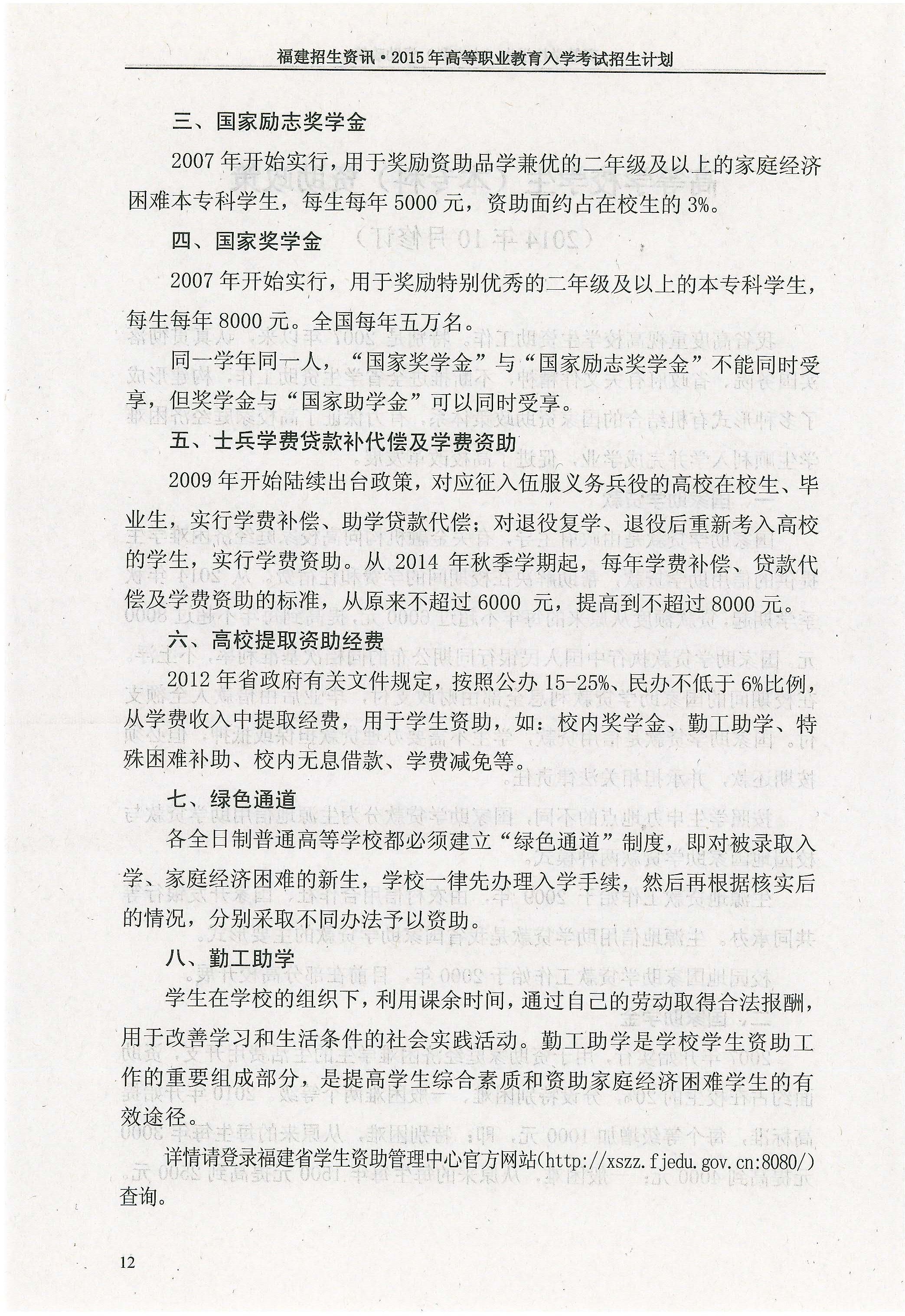 2015年福建省高职招考考生须知
