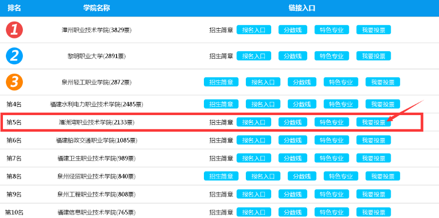 本次活动由所有考生进行投票,每人每天限投一票。欢迎广大考生积极参与,选出你心中最优秀的高职单招学校。此排名完全是网友参与投票的结果,对此结果本网站不做任何解释。投票过程严禁使用刷票软件进行刷票,经本站发现有权根据已刷票行为情节分别处于减票、中止投票、票数清零等处罚。