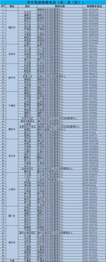 根据有关规定,办理有关奖助贷、补偿金事宜一律以教育、财政等有关行政部门及学校正式文件为依据,一般要求学生、家长到实地办理。家长、学生遇到此类事,应先与教育行政部门、学校联系,或拨打省学生资助管理中心电话(0591—87091297,87091473)或各地、各高校(详见附表)联系确认。