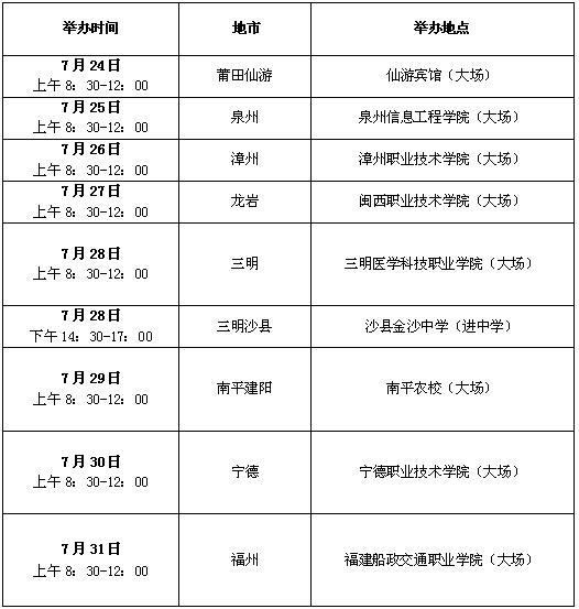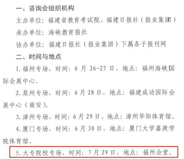 今年福建专科批高招咨询会具体时间、地点安排如下,请考生和家长就近选择参加。