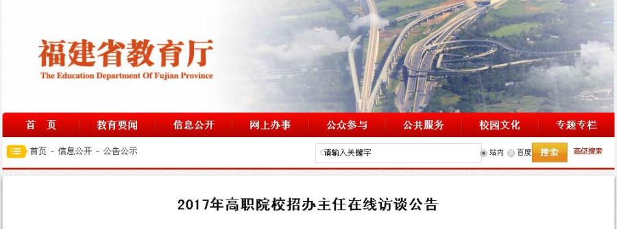 访问网址:http://www.fjedu.gov.cn/html/xxgk/gggs/2017/07/11/e9ac6bec-80ed-4055-a659-256763aa39a4.html